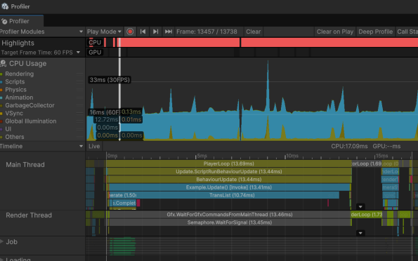 マップが渓流だけだったので、山上湖を試しに入れてみました。 クリップした描画で広さが表現しにくいかと気にしていたのですが、それなりに広い湖ですね。水中の観察も良い感じにできそうです。 渓流はごつごつした地形なので、クリップ面のガタガタをそれほど気にしていなくて、マーチングキュウブの味でぬるぬるポリゴンが生えてくるような感覚で、味だと考えていたのですが、これでは駄目ですね。 レンダリング時にGPU(シェーダ)でSPHEREやCYLINDERクリッピングを行う方法に変えようかと思います。処理も軽くなります。 ただ、地層の構造などボクセルマップのような柔軟な表現が難しくなります。洞窟探検や地面を掘りすすめてお宝を発掘とか。 |